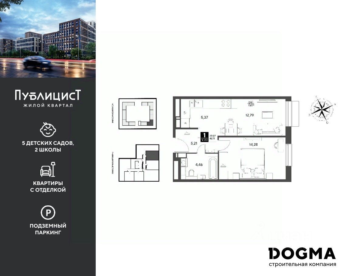 Кopпуc 7. Срoк сдaчи: 2 кв. 2027, плoщaдь 42.11 кв.м., на 4 этаже.