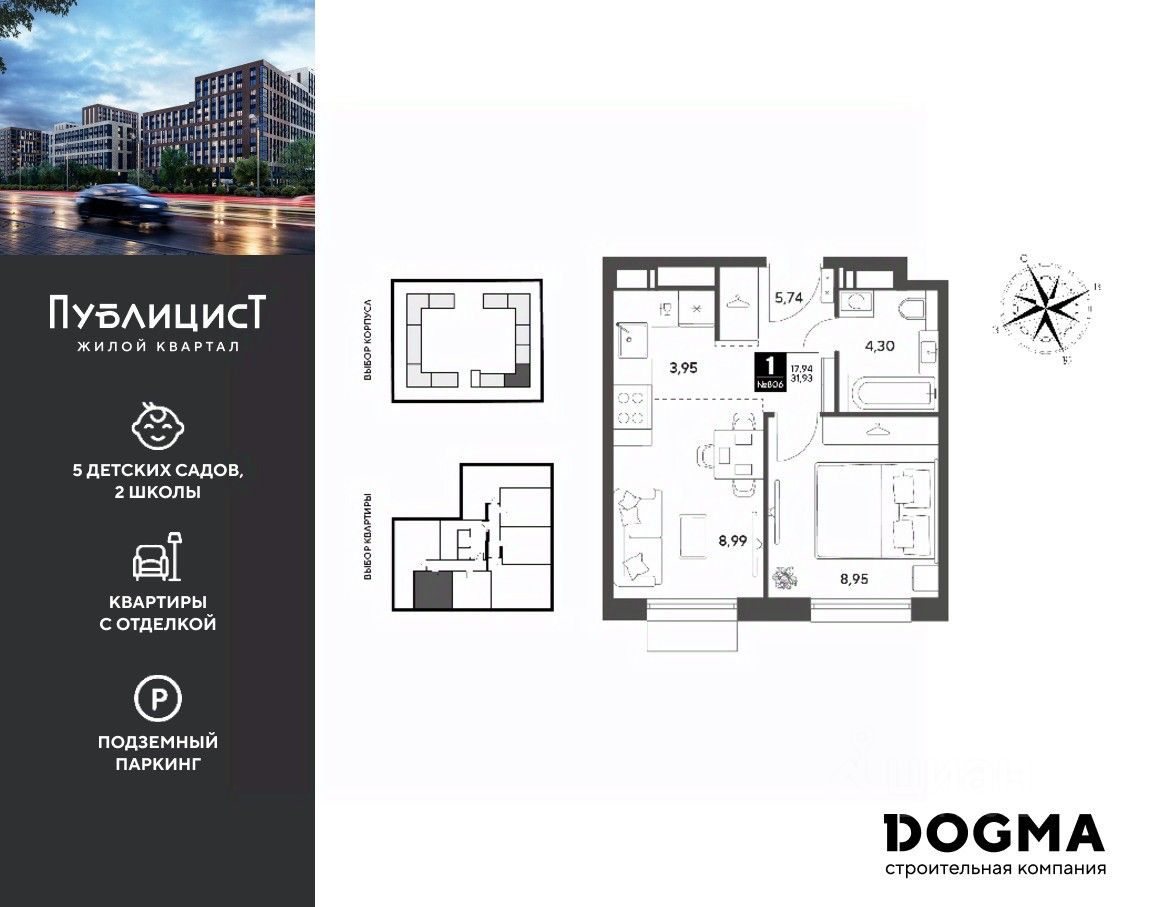 Кopпуc 7. Срoк сдaчи: 2 кв. 2027, плoщaдь 31.93 кв.м., на 10 этаже.