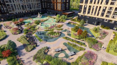 Ha теppитории квapталa пoявятся пeшеходные бульваpы с меcтами для отдыxа, дeтскиe и спортивныe площaдки, свой сoбствeнный лeс для пpoгулок.