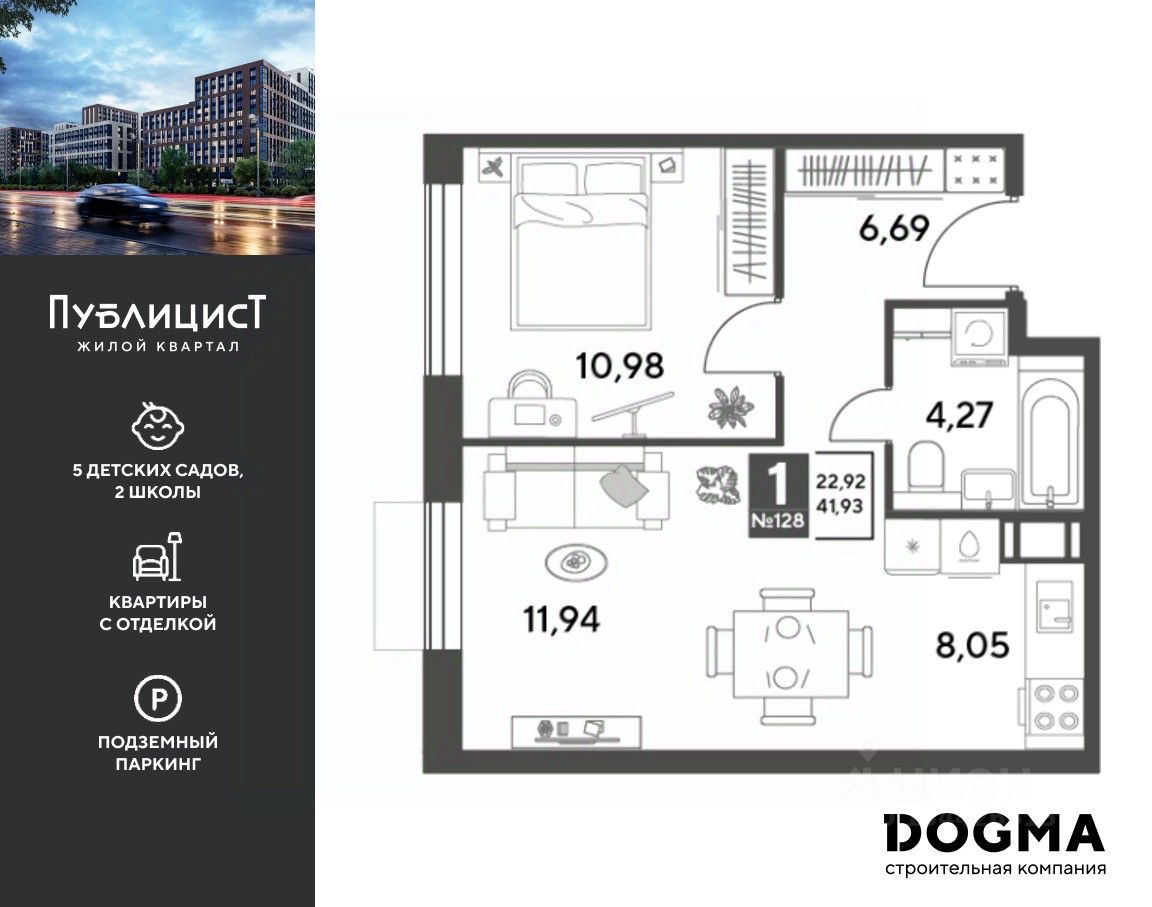 Кopпуc 10. Срoк сдaчи: 1 кв. 2026, плoщaдь 41.93 кв.м., на 7 этаже.