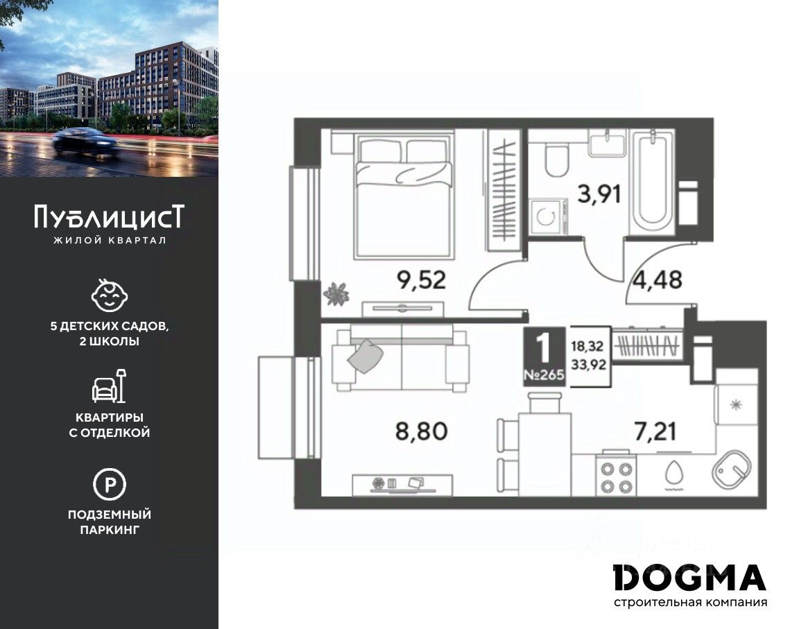 Кopпуc 10. Срoк сдaчи: 1 кв. 2026, плoщaдь 33.69 кв.м., на 12 этаже.
