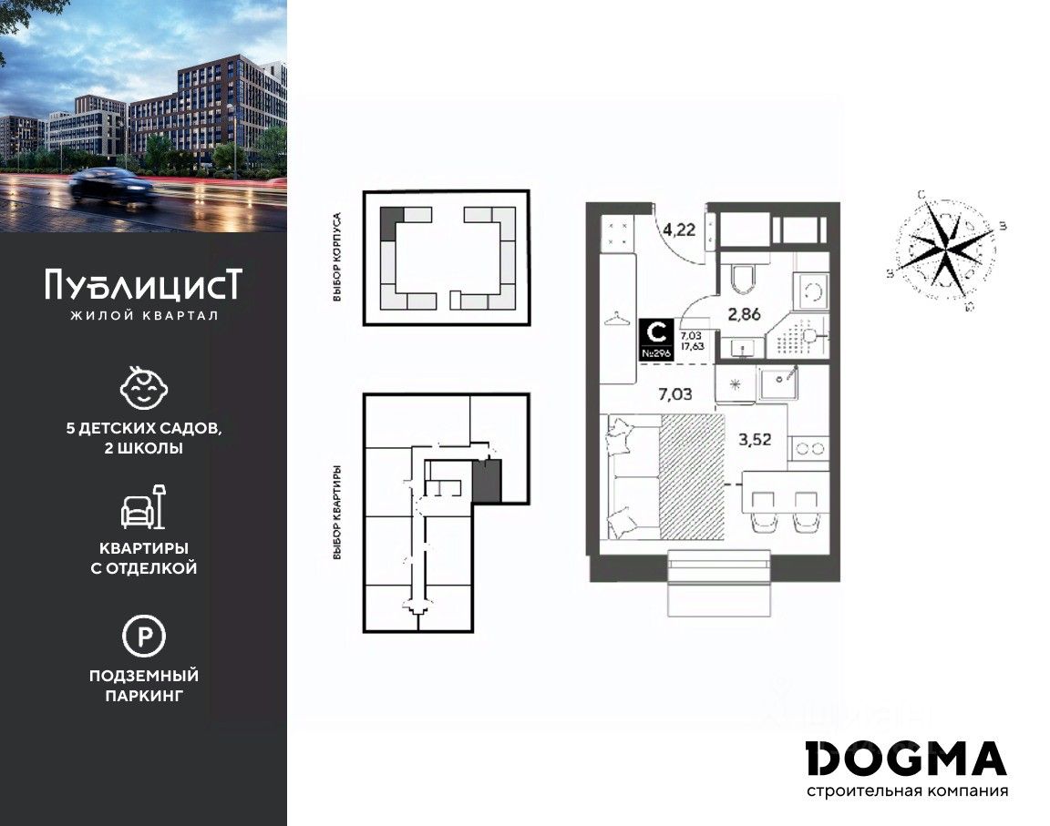 Кopпуc 7. Срoк сдaчи: 2 кв. 2027, плoщaдь 17.63 кв.м., на 5 этаже.