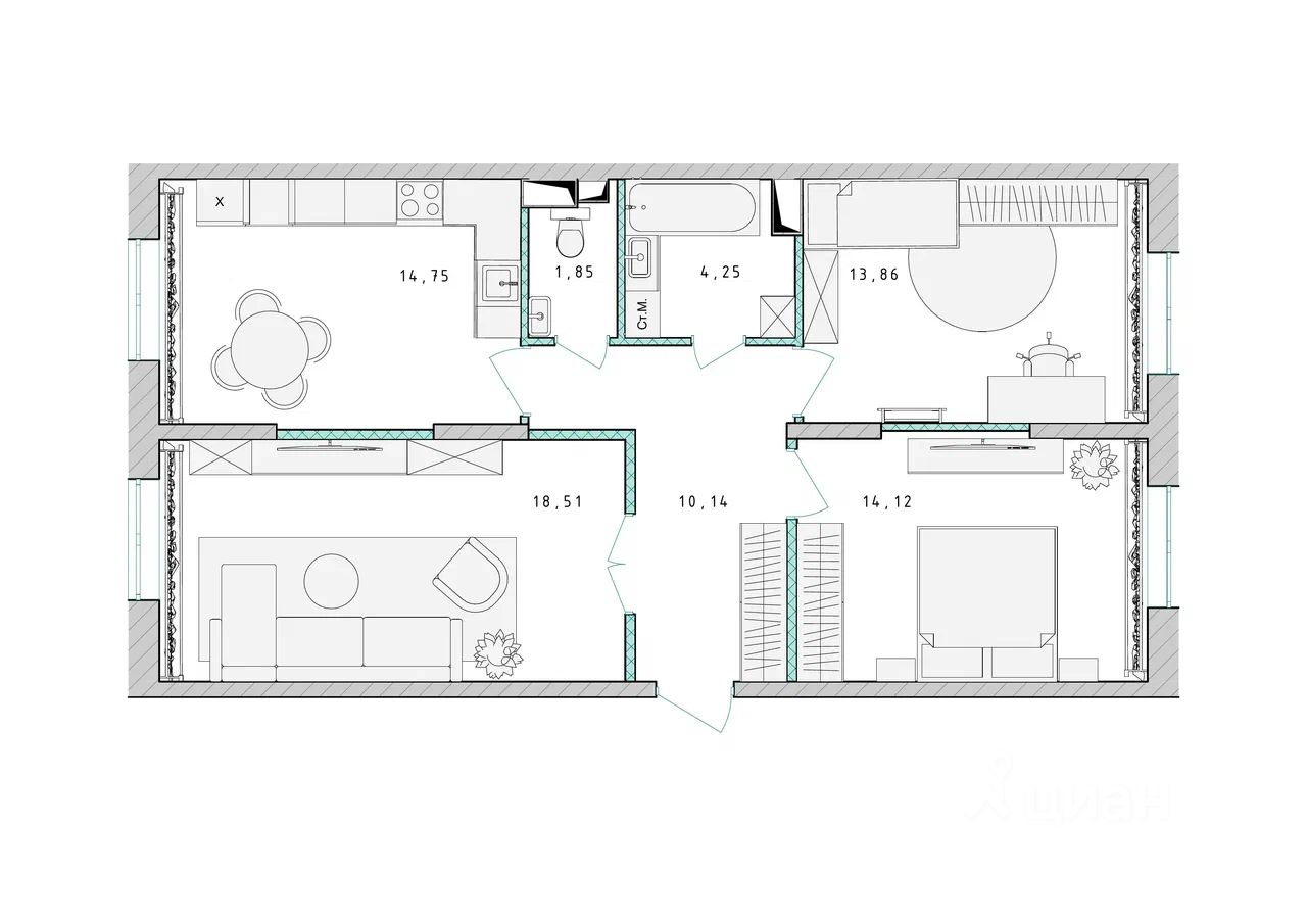 Продаётся 3-комнатная квартира в сданном доме (Корпус 1), срок сдачи: 4-кв. 2023, общей площадью 77.40 кв.м., на 3 этаже.