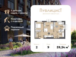 В продаже 2-комнатная квартира площадью 59.54 кв. м на 9 этаже. Квартира расположена в современном жилом комплексе "Публицист" от DOGMA, в корпусе 10. Акция! В честь дня рождения компании DOGMA приобретайте квартиру в ЖК "Публицист" со скидкой до 14%! Успейте оформить покупку жилья на выгодных условиях до 31 марта!
