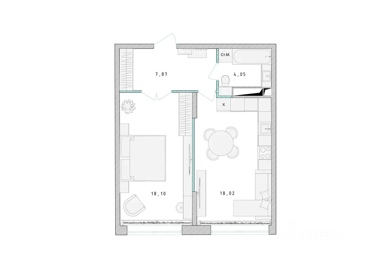 Продаётся 1-комнатная квартира в сданном доме (Корпус 1), срок сдачи: 4-кв. 2023, общей площадью 48.00 кв.м., на 15 этаже.