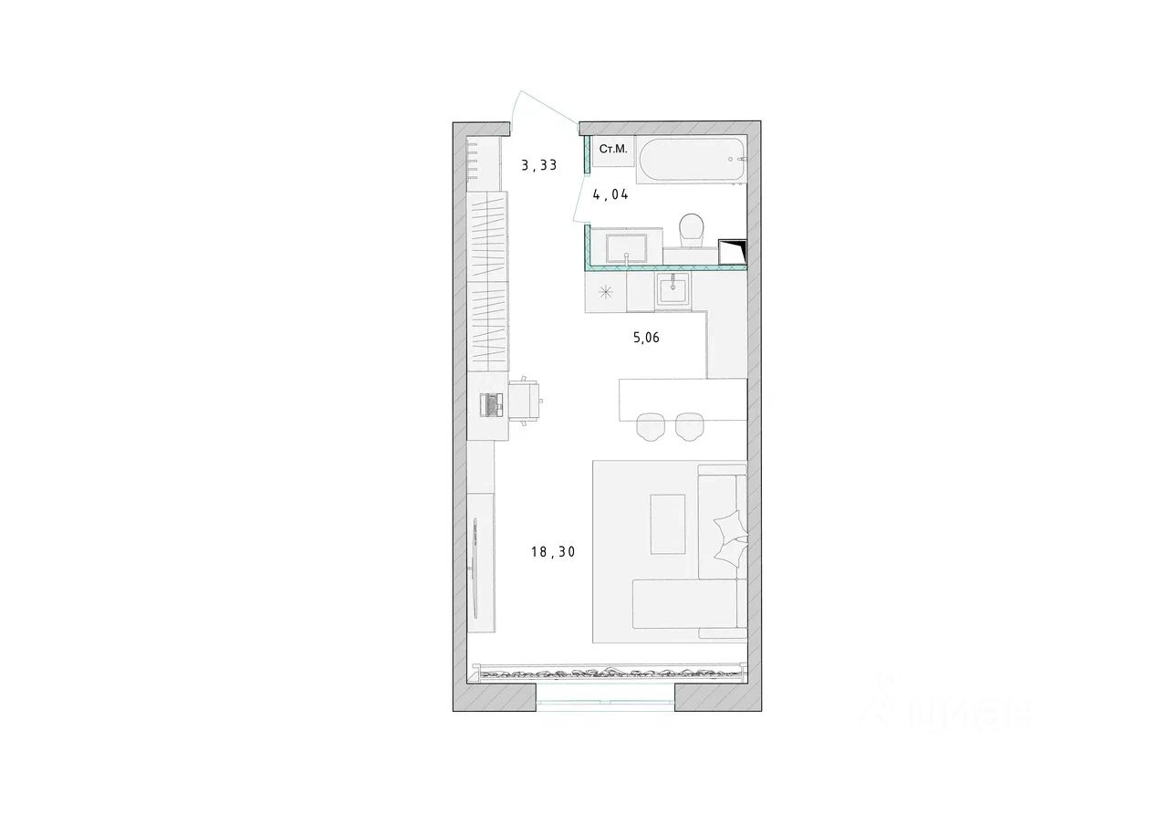 Продаётся студия в сданном доме (Корпус 1), срок сдачи: 4-кв. 2023, общей площадью 30.80 кв.м., на 2 этаже.