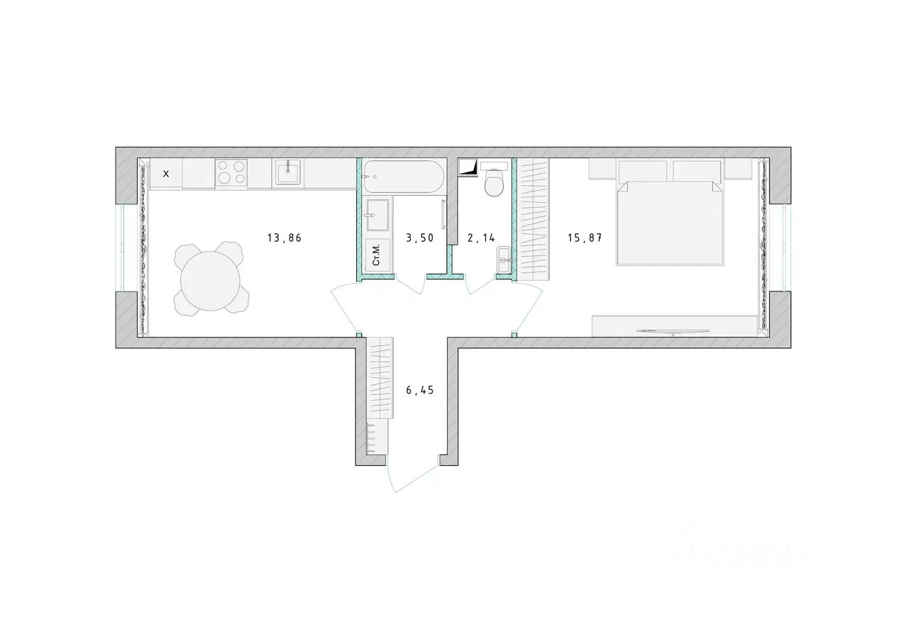 Продаётся 1-комнатная квартира в сданном доме (Корпус 1), срок сдачи: 4-кв. 2023, общей площадью 41.20 кв.м., на 11 этаже.