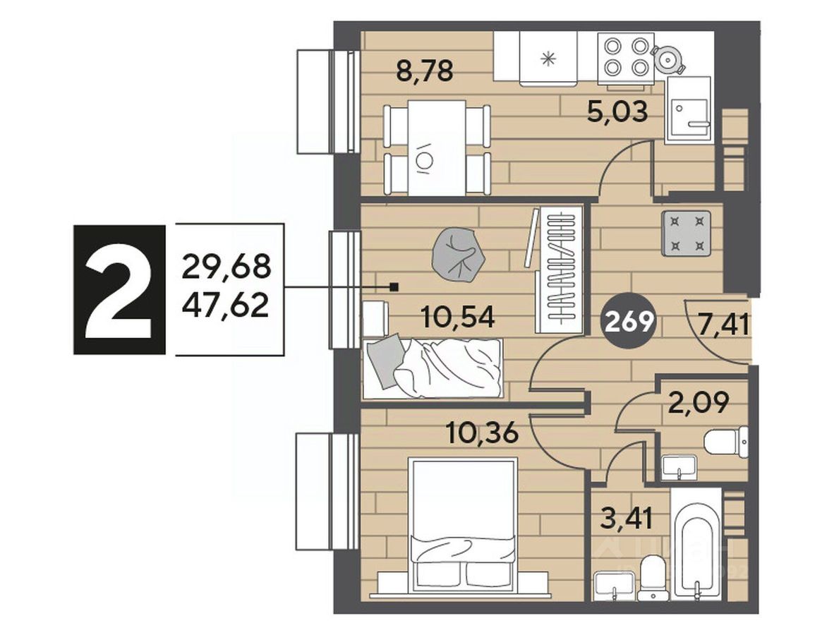 В продаже 2-комнатная квартира площадью 47.62 кв. м на 3 этаже. Квартира расположена в современном жилом комплексе "Публицист" от DOGMA, в корпусе 7.