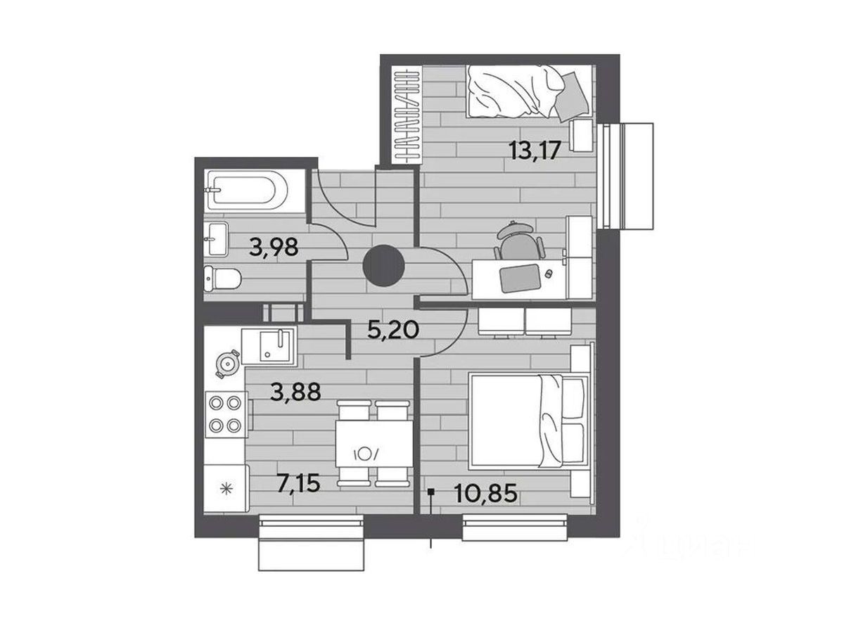 В продаже 2-комнатная квартира площадью 44.23 кв. м на 7 этаже. Квартира расположена в современном жилом комплексе "Публицист" от DOGMA, в корпусе 10.