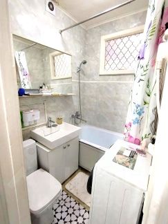 Санузел выполнен в керамической плитке. Установлена стиральная машина. Все окна заменены на окна ПВХ. В санузле и на кухне установлены фильтры очистки воды.