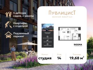 В продаже студия площадью 19.68 кв. м на 14 этаже. Квартира расположена в современном жилом комплексе "Публицист" от DOGMA, в корпусе 12.