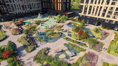 На территории квартала появятся пешеходные бульвары с местами для тихого отдыха, спортивные и игровые площадки из экологичных материалов, собственный лес для прогулок и семейных пикников. Украшением территории станут яркие инсталляции и живописное озеленение.