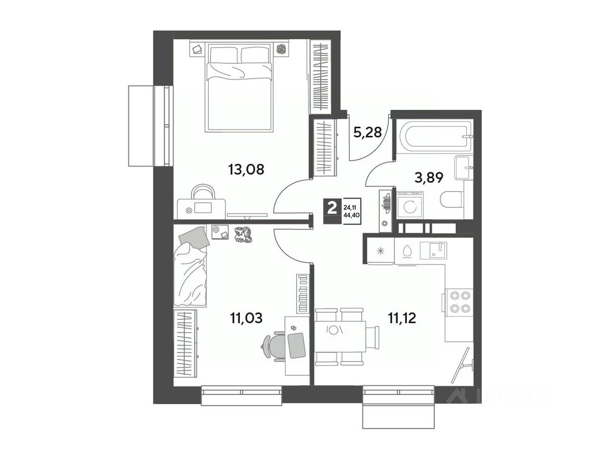 В продаже 2-комнатная квартира площадью 44.40 кв. м на 8 этаже. Квартира расположена в современном жилом комплексе "Публицист" от DOGMA, в корпусе 7.