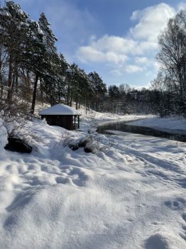 Территория поселка - бывшее имение фабриканта Абрикосова. Уникальное место, очень тихое и живописное. Атмосферность поселка невозможно передать через фото, ее можно только прочувствовать на месте! На участке растут дубы, сосны, туи, живут белки. За территорией поселка расположены источник воды и песчаный пляж. Это лучшее место для детей: летом купаются в реке, зимой катаются с горки. Вдоль реки - километровые прогулочные тропы, можно заниматься бегом, кататься на лыжах, гулять с семьей, выгуливать собаку.