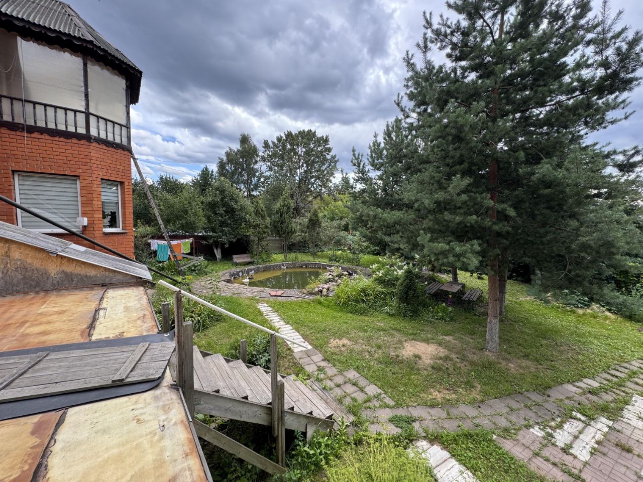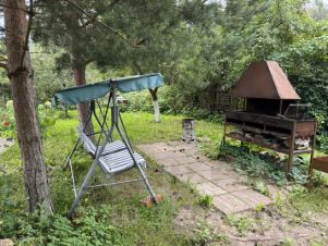 Красивый приусадебный участок с прудиком и рыбками, мангальной зоной, фруктовыми деревьями, соснами. Есть складское помещение и мастерская в доме и во дворе. Большой вольер для собаки. Площадка для автомобиля.