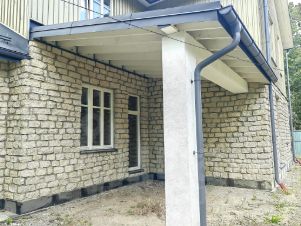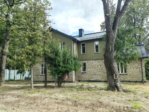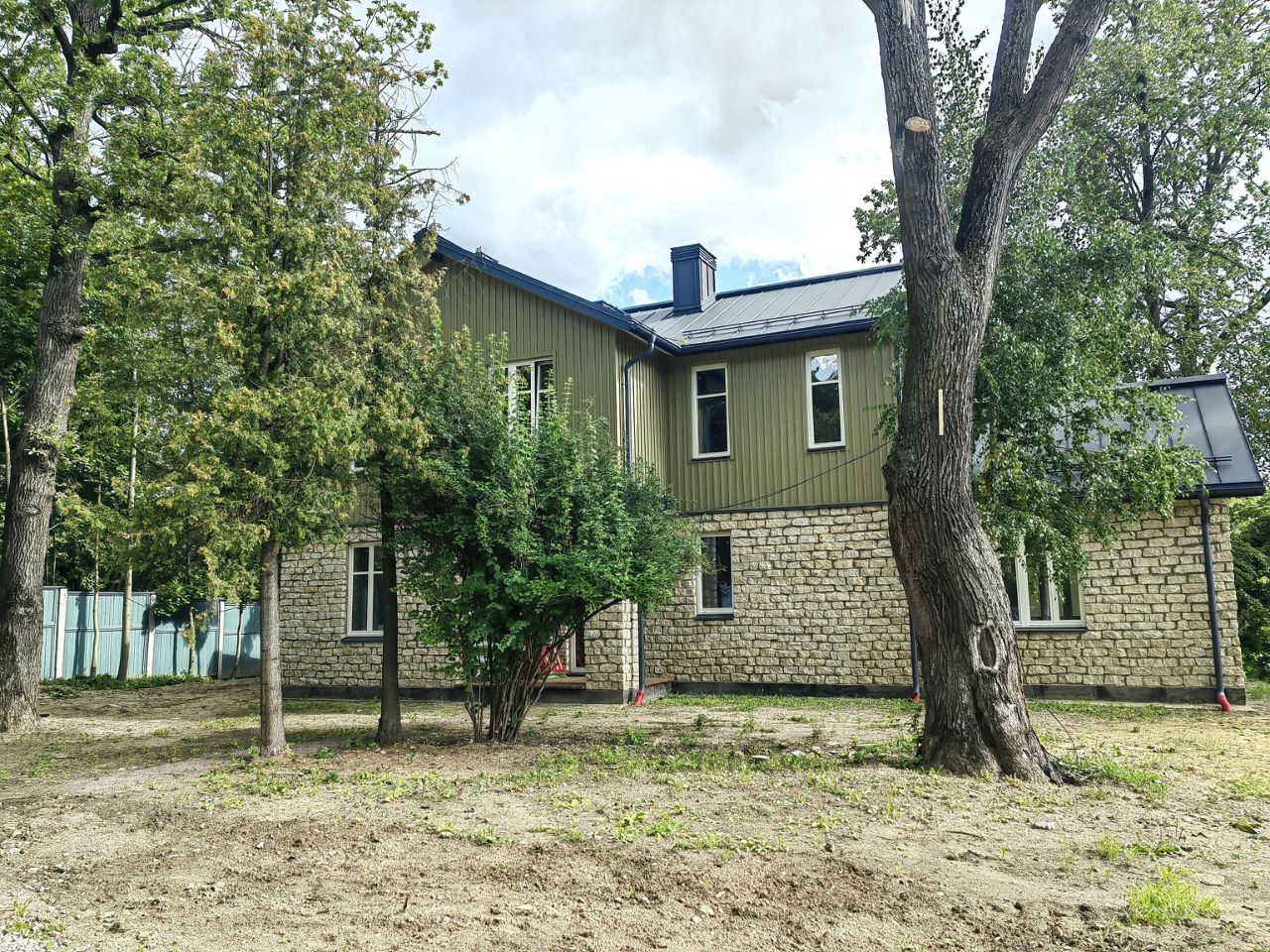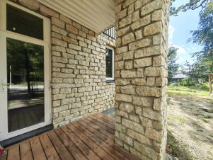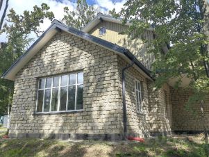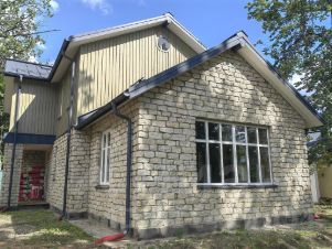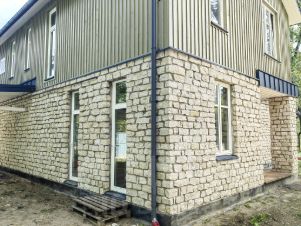 - первый этаж облицован тесанным вручную известняком, второй этаж деревом;