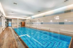1 этаж: прихожая, гардеробная, гостиная с каминной зоной и выходом в зимний сад, кухня-столовая, кабинет, санузел, зона бассейна с инфракрасной сауной и санузлом, с противотоком терраса площадью 100 м2;
