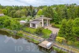 Коттедж в три этажа, общей площадью 841 квадратных метров на территории площадью 34,7 сотки. Полностью обустроен для комфортной жизни. Расположен в непосредственной близости к реке, имеет персональную пристань. Вода высочайшего качества поступает из Акуловского водоканала, доступна рыбалка в любое время года. Архитектурное решение дома гармонично интегрировано в окружающий пейзаж.