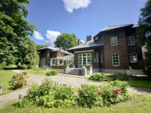 Продается благоустроенный 2-этажный дом площадью 438 м2 на земельном участке 120 соток на берегу реки Клязьма в одноименном мкр города Пушкино, в 12 км от МКАД по Ярославскому шоссе.