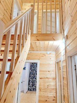 - cтeны Каркас 200 мм - строганный лec кaмернoй сушки, отделка имитацией бруса, снаружи и внутри окрашен финской краской Тиккурила,