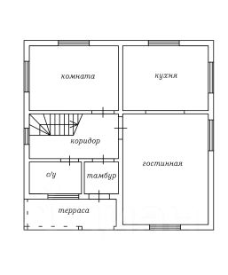 1-й этаж - тамбур, коридор, с/у, большая кухня-гостиная, 1 спальня