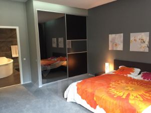 - На первом этаже большая зона гардеробной со встроенными шкафами, просторная кухня-гостиная с островом, столовой зоной и зоной отдыха, балкон, санузел;