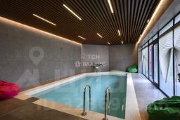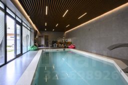 Бассейн 7х3,5 метров, весь комплекс выложен высококачественным итальянским керамогранитом, чаша бассейна мозайка, реечный дизайнерский потолок, установлена качественная сплит система автоматической подачи и забора воздуха. Настоящая русская баня, мощная чугунная печь каменка, дизайнерская отделка парной с подсветкой и панно из можжевельника, большая парная рассчитана на 10 человек.