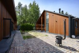 Выполнено благоустройство территории, установлен дренаж вокруг дома и вокруг банного комплекса, выложена брусчатка.