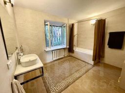 Просторная кухня-гостиная с шикарным камином (48 м²), 5 комнат, мастер-спальня (с ванной комнатой и рабочим местом), библиотека, 3 санузла;