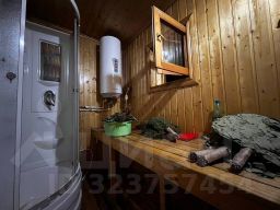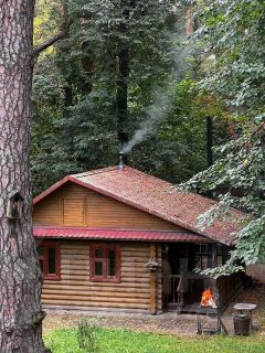 На участке отдельно стоящая русская баня (сруб): открытая терраса, комната отдыха, помывочная, парилка.