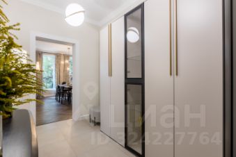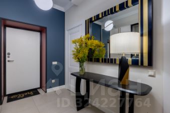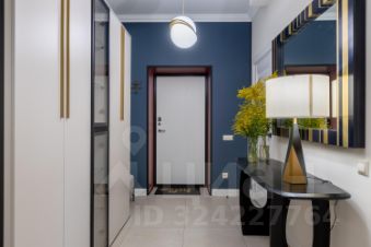 Светлая прихожая с огромными зеркалами, шкафом и предметами американского декора;