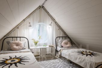Мансардный этаж : гостевая спальня , свой санузел и свободное пространство.