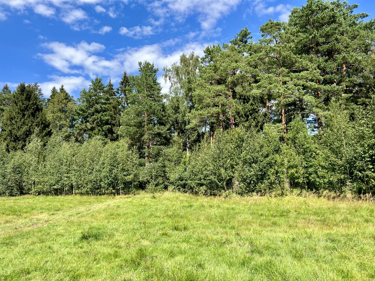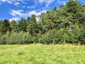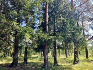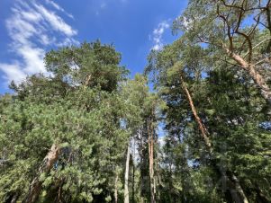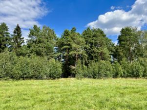 Участок ровный, сухой, в окружении хвойного леса, рядом река.