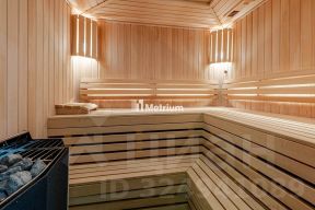 1 этаж: гардеробная, гостевой с/у,1ая гостиная, 2ая гостиная, кухня, столовая, большая столовая, спальня с с/у и гардеробной, кабинет, спа-зона с бассейном, хаммамом и финской сауной
