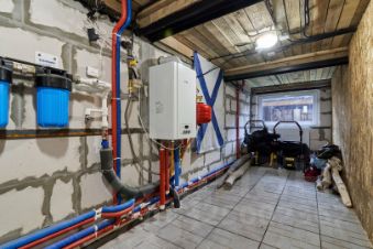 На певом этаже- оборудованный теплый гараж , на две машины, бойлерная