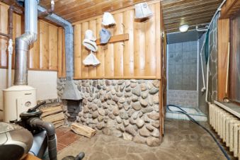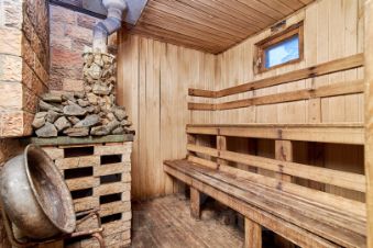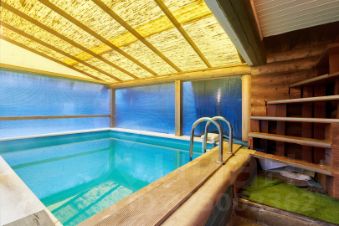 отдельная баня с парилкой, бассейном и просторной комнатой отдыха создаёт полноценную зону релакса
