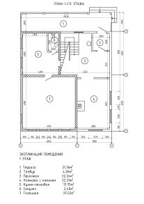 Первый этаж: Просторный холл (22 м²), уютная зона отдыха с камином (22 м²) (можно готовить на углях, не выходя из дома), кухня-столовая (18 м²), гостевой санузел, вторая гостиная с роялем и зоной домашнего кинотеатра (37,5 м²).