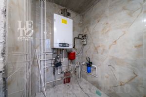 Коммуникации: газ (установлен газовый котел), электричество 15 квт, центральный водопровод, септик. Гаражные ворота и основные ворота- электрические.