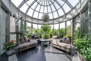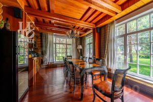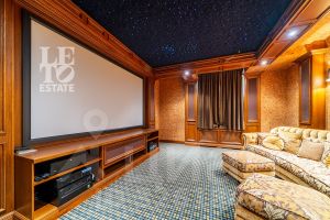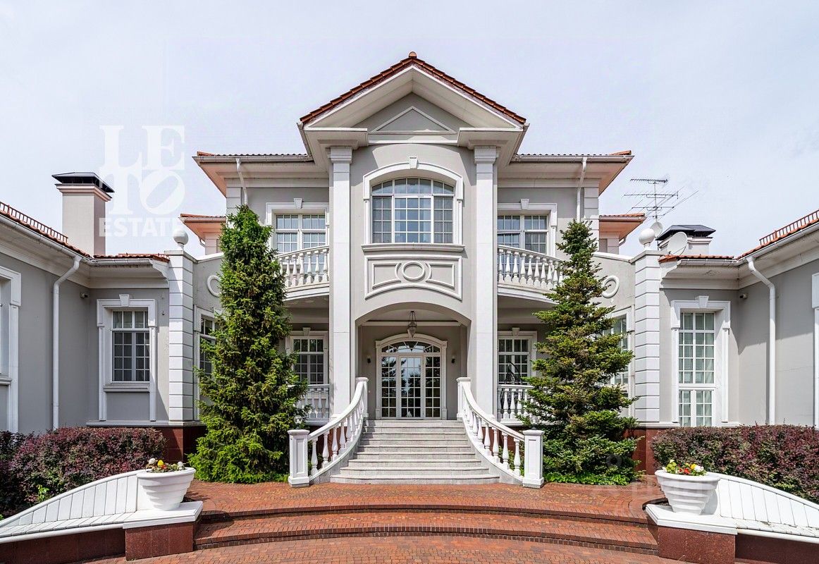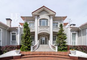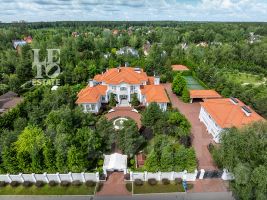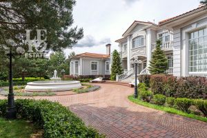 На лесном участке в 74 сотки расположен основной дом 1300 кв.м с шестью спальнями, просторной гостиной, каминным залом и выходом в зимний сад, где зелень растений радует круглый год, бассейном, спа зоной, тренажерным залом, библиотекой, кинотеатром и многочисленными помещениями для досуга. На территории усадьбы расположены: отдельно стоящая деревянная баня и дом для приема гостей c отдельной барбекю зоной, двухэтажный дом для персонала, совмещенный с гостевым домом, гараж для специализированной техники, навес для автомобилей, ротонда, круглогодичная теплица, теннисный корт. На участке выполнен ландшафтный дизайн по индивидуальному проекту. Сделан дренаж, установлена системы автополива, выведено зонированное уличное освещение, в центральной части перед парадным входом установлен фонтан, часть участка занимает плодовый сад (яблони, вишни, груши, плодовые кустарники). На участке бережно сохранены многолетние дубы и сосны.