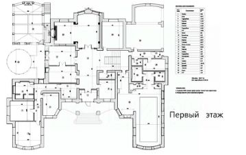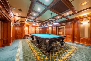 Цоколь: инженерная комната, профессиональная холодильная камера для хранения продуктов, винный погреб, постирочная, спортивный зал, зал для тенниса, игровая комната для детей с кинотеатром, комната отдыха, бильярдная, сейфовая и оружейная комната, санузел, мастерская, кладовые и технические помещения;