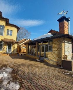 ГОСТЕВОЙ ДОМ. Застеклённая веранда, с/у, оборудованная кухня - гостиная. Русская печь со спальным местом, зона для отдыха и музицирования. Панорамные окна. Полы с подогревом.В подвале Гостевого дома находится помещение с котельной ( котёл Buderus) и постирочной. Установлены Стиральная и сушильная машины, душевая кабина, с/у, помещение для хранения.