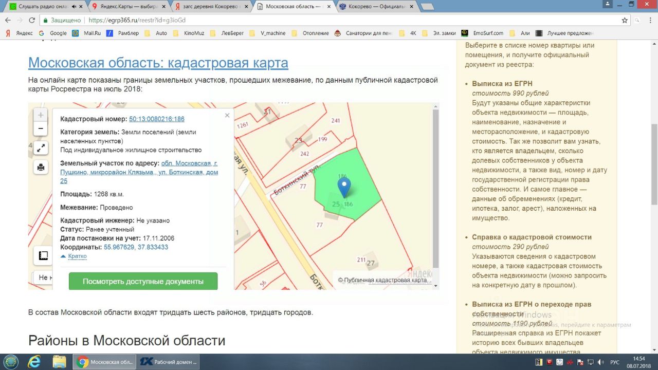 Участок на кадастровой карте 50:13:0080216:186, площадь 1268 кв.м.