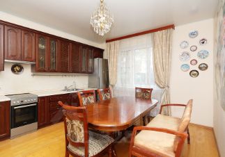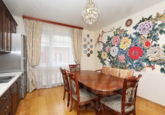 Планировка продумана: на первом и втором этажах — семь изолированных комнат, просторная гостиная, светлая кухня, два санузла (один с окном). Высокие потолки, много света. В комнатах уложен качественный натуральный паркет, установлены межкомнатные двери из массива. В доме чисто, аккуратно и очень тепло. Мебель может остаться по договорённости. Интерьер в хорошем состоянии, при желании можно сделать лёгкое обновление под себя.