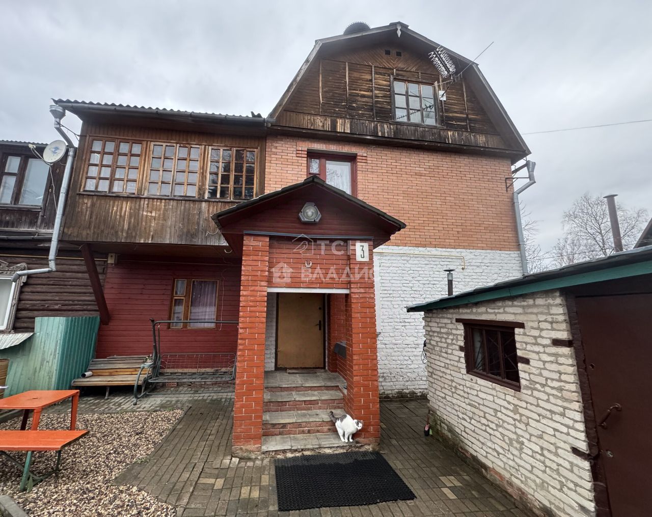 Дом деревянный с кирпичной облицовкой
