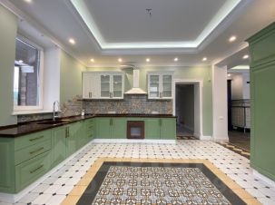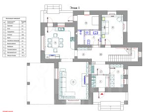 1 этаж площадь 112кв.м.: кухня 22кв.м. с выходом на закрытую веранду, гостиная с камином 26кв.м., гостевая комната 15кв.м., гардеробная 7кв.м., ванна, бойлерная, прихожая.