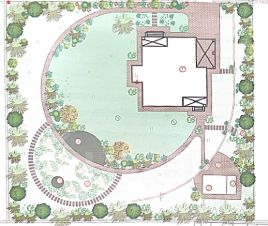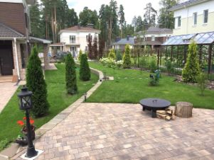 Особое внимание уделено ландшафту участка, участок имеет небольшой перепад, что позволило зонировать планировку, построена веранда с мангалом, хоз постройка, спортивная площадка, высажено более 250 растений, в том числе редких, которые в настоящее время сложно купить. Высажена аллея сирени, сливы, груши, яблони, орешник, все плодоносит. По участку разведена система полива.