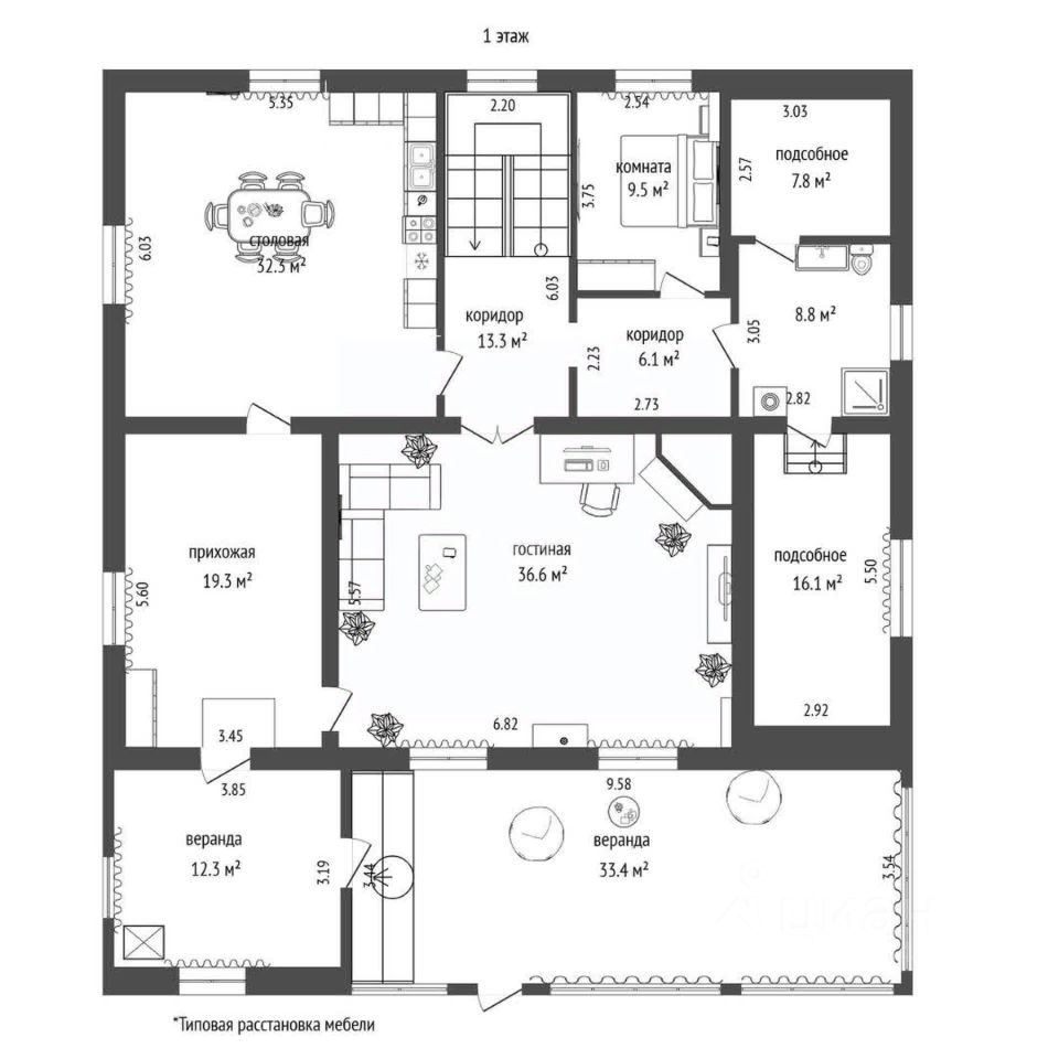 Внутри дома вас ждут 9 жилых комнат, просторная кухня площадью 32 м² и уютная гостиная на 36 м² идеальные места для семейных встреч и праздников. Два санузла (8,8 м² и 5,1 м²) обеспечивают комфорт и удобство для всех членов семьи. Также в доме есть сауна и бассейн в цокольном этаже, который требует небольших доработок, но уже сейчас предлагает отличные возможности для отдыха.