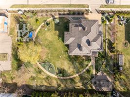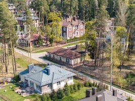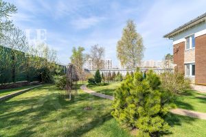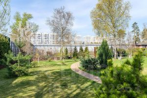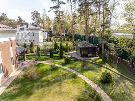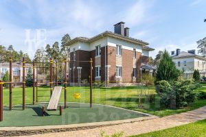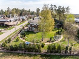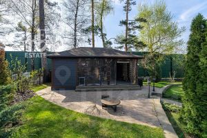 Просторный участок 22.67 сотки правильной формы оформлен с заботой о природе: здесь зеленеет газон, высажены плодовые деревья и кустарники, выложены аккуратные дорожки, установлено освещение и система полива. Для активного отдыха предусмотрена спортивная площадка. Территория участка огорожена забором, въездные ворота оснащены электроприводом.