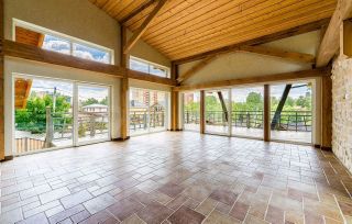 • Большие панорамные окна, создающие единения с природой, крыша с выступающими карнизами и просторные балконы с выходом на большую террасу.