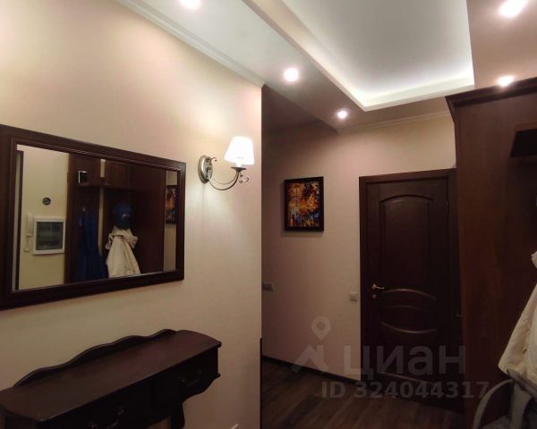 В прихожей установлен большой встроенный шкаф-купе с зеркалами в пол.